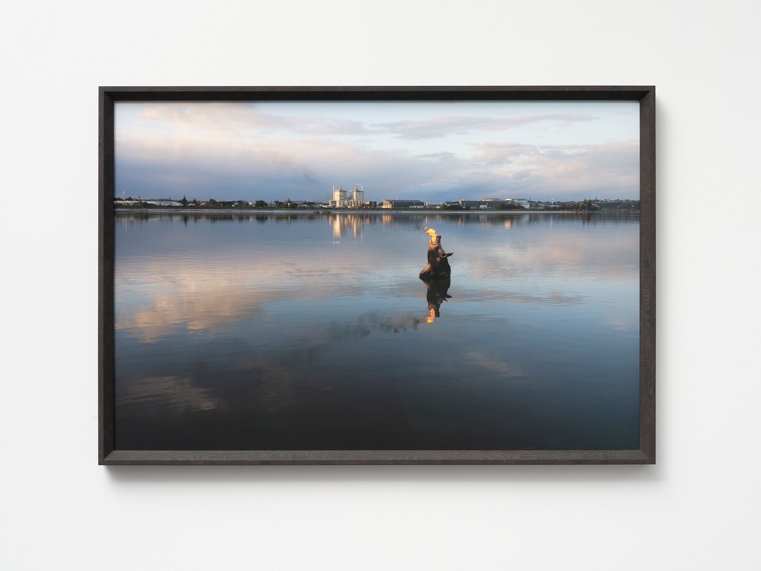 As with much of Tia’s work, the production process becomes an extension of the pūrākau. Armed with her camera and a vision, Tia seeks to capture images of Castlecliff, a community that she has been connected to throughout her life. Despite being of the old bones of Whanganui, Tia found herself feeling uncomfortable and unwanted, falling prey to the reproaches of the alien inhabitants.◇◆◇Situated on the outskirts of a place considered home, the images tell a confusing story. Taxidermy creatures are placed in environments we are accustomed to seeing them in while alive. Yet in death, we know they aren’t meant to be there. A severed stag’s head is draped in plastic, the flaming snout of a boar protrudes from the awa in front of the meatworks, and dozens of antlers appear to sink below murky waters.◇◆◇Gentrification and taxidermy speak to similar contradictions. A stag is killed and mutilated so that its elegance and beauty can be possessed and admired. As newcomers are drawn to the cultural diversity and rugged creativity of Castlecliff, they take up space in a community that is not their own, failing to recognise that they are not becoming more like Castlecliff; Castlecliff is becoming more like them.—Aidan Ritchie