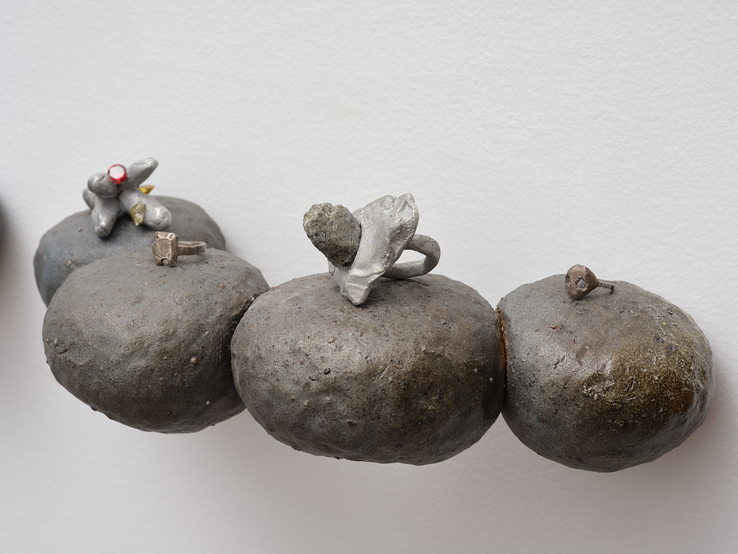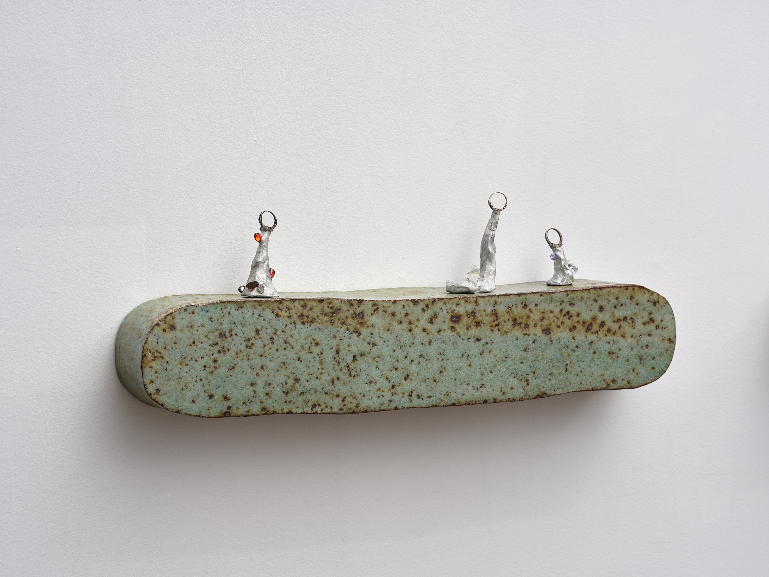 Artist-initiated, the exhibition builds on previous projects involving Fritsch and Jenkins and reflects their shared interest in collaboration as a generative force—an opportunity to create new personal and aesthetic relationships and open up fresh readings. Rings and ceramics exist here in a mutually nourishing relationship of support: holding and being held. Drawing inspiration from both the natural world and human-made forms, the artists create objects that enchant and surprise, uncovering nuggets of promise and wonder in a world that often feels beleaguered.