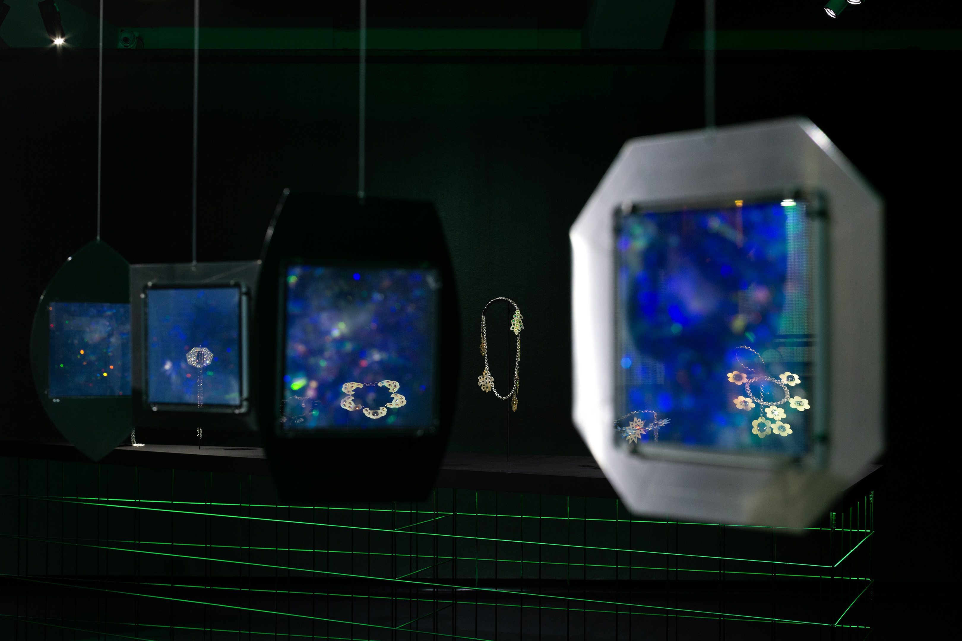 MONIEK SCHRIJER Lightning, 2021–22 Replica diamond, sterling silver, brass, patina paint, black diamond simulants Photograph by Cheska Brown, courtesy of City Gallery Wellington Te Whare Toi