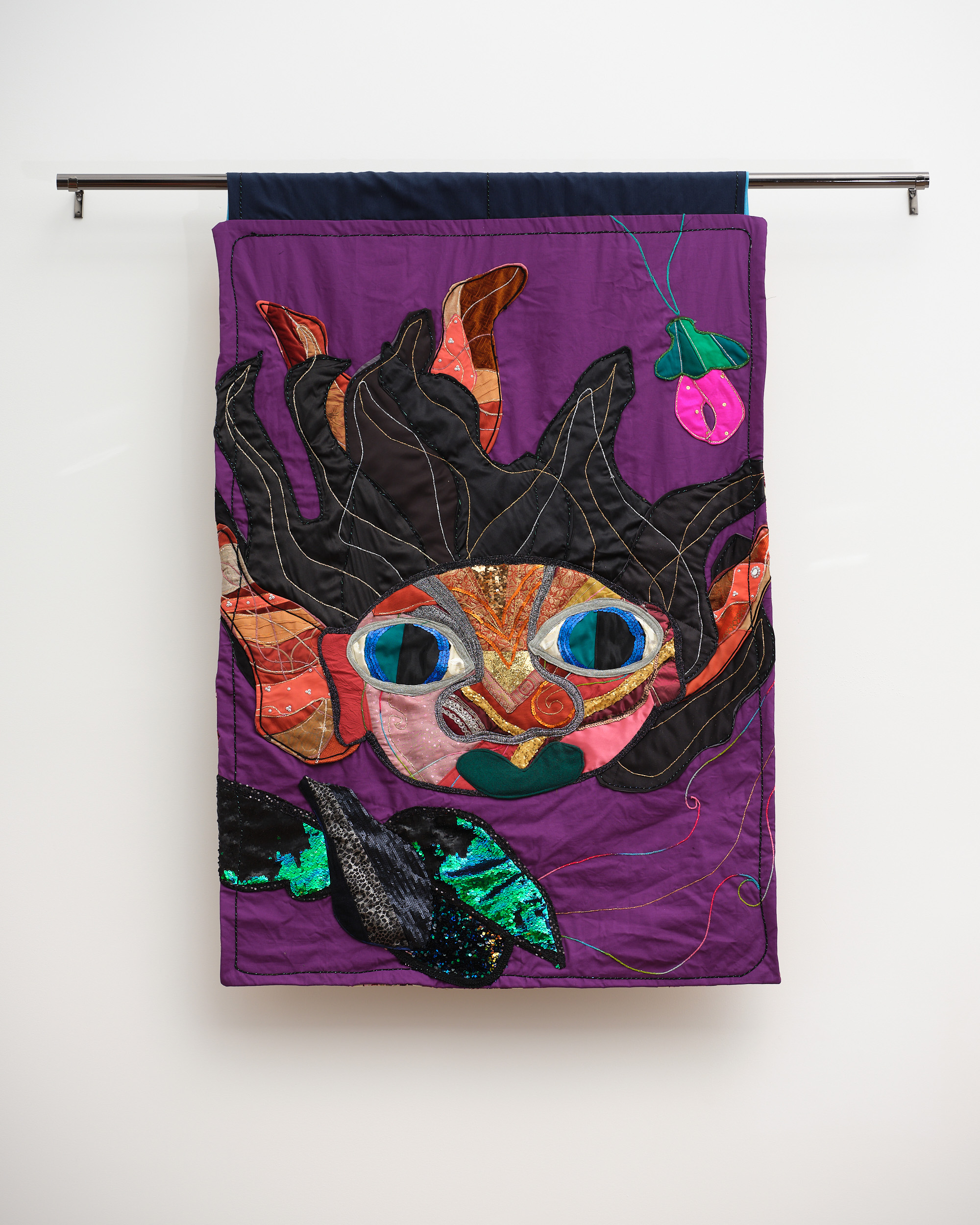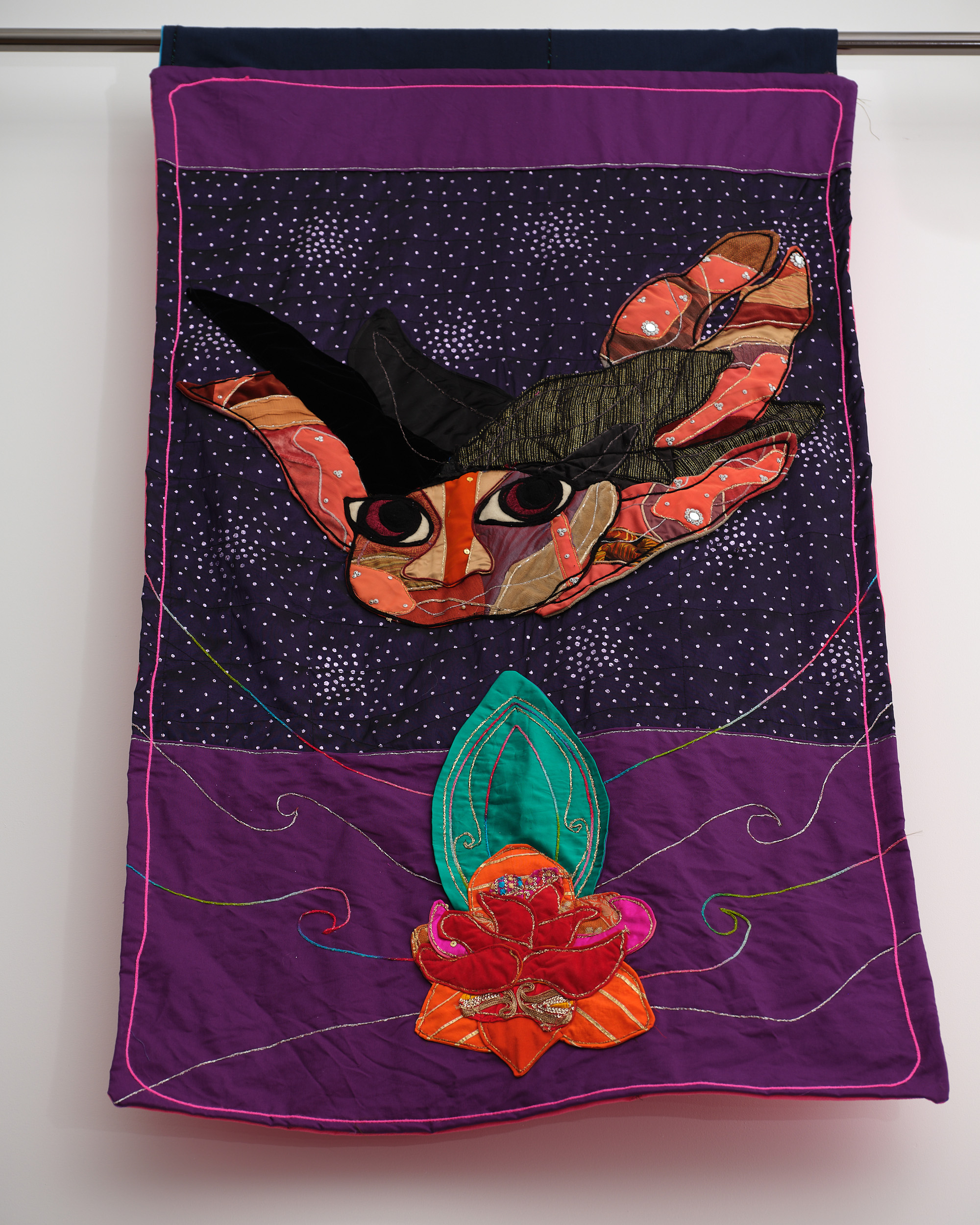 Maungarongo ‘Ron’ Te Kawa’s Heavenly Bodies centres on nine quilts. Each represents one of the nine whetū of the Matariki star cluster, which are often personified as a whaea, Matariki, and her eight tamariki: Pōhutukawa, Tupuānuku, Tupuārangi, Waitī, Waitā, Waipunarangi, Ururangi, and Hiwa-i-te-rangi.