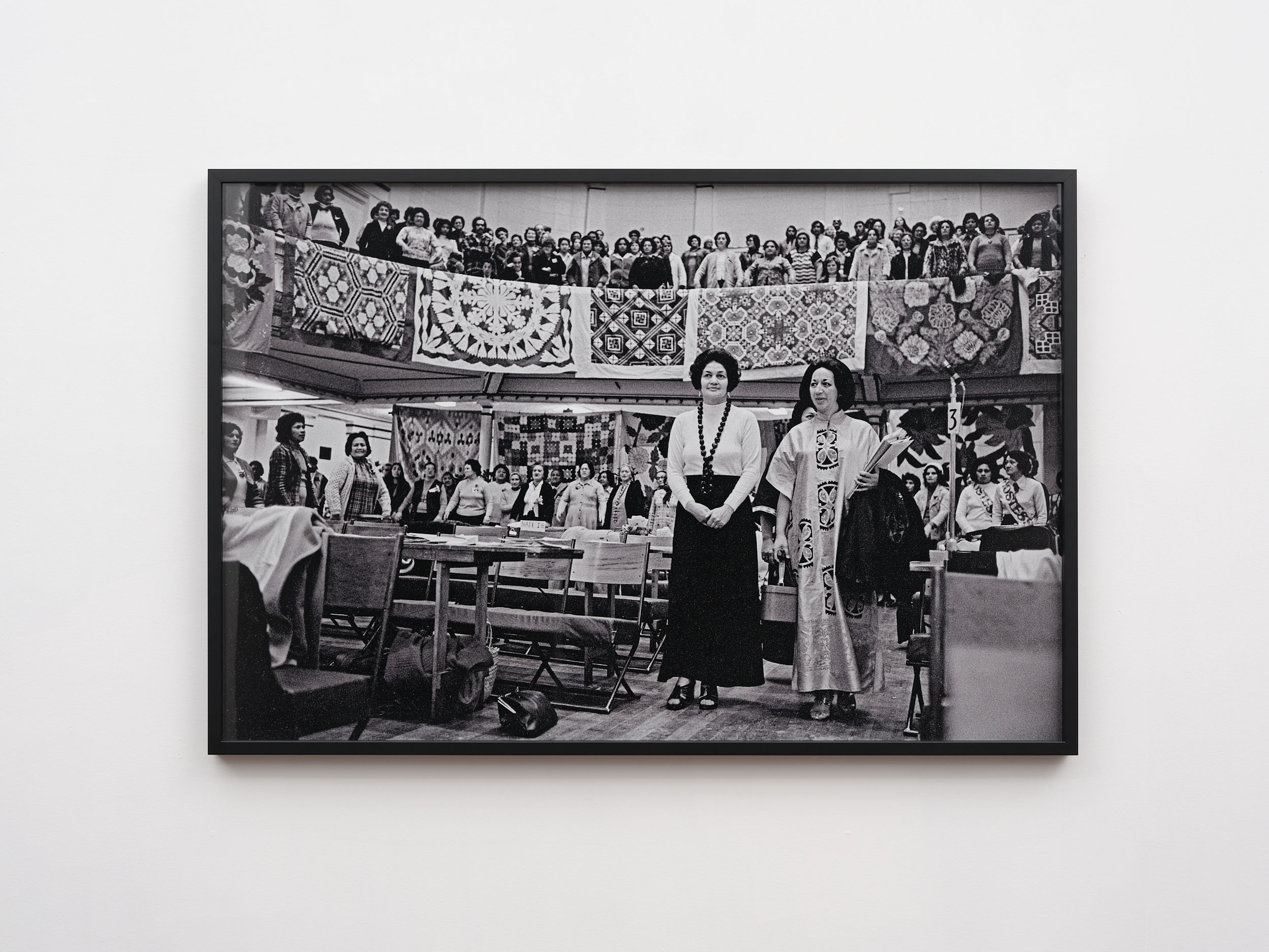 JOHN MILLER Dame Mira Szászy and Hon. Whetū Tirikātene-Sullivan, Māori Women’s Welfare League hui, Wellington Town Hall, Te Whanganui-a-Tara, 1975 Printed 2021 Exhibition print from Pouwātū: Active Presence: John Miller and Elisapeta Heta, Objectspace, Tāmaki Makaurau, 2021 870 x 1295mm (frame)